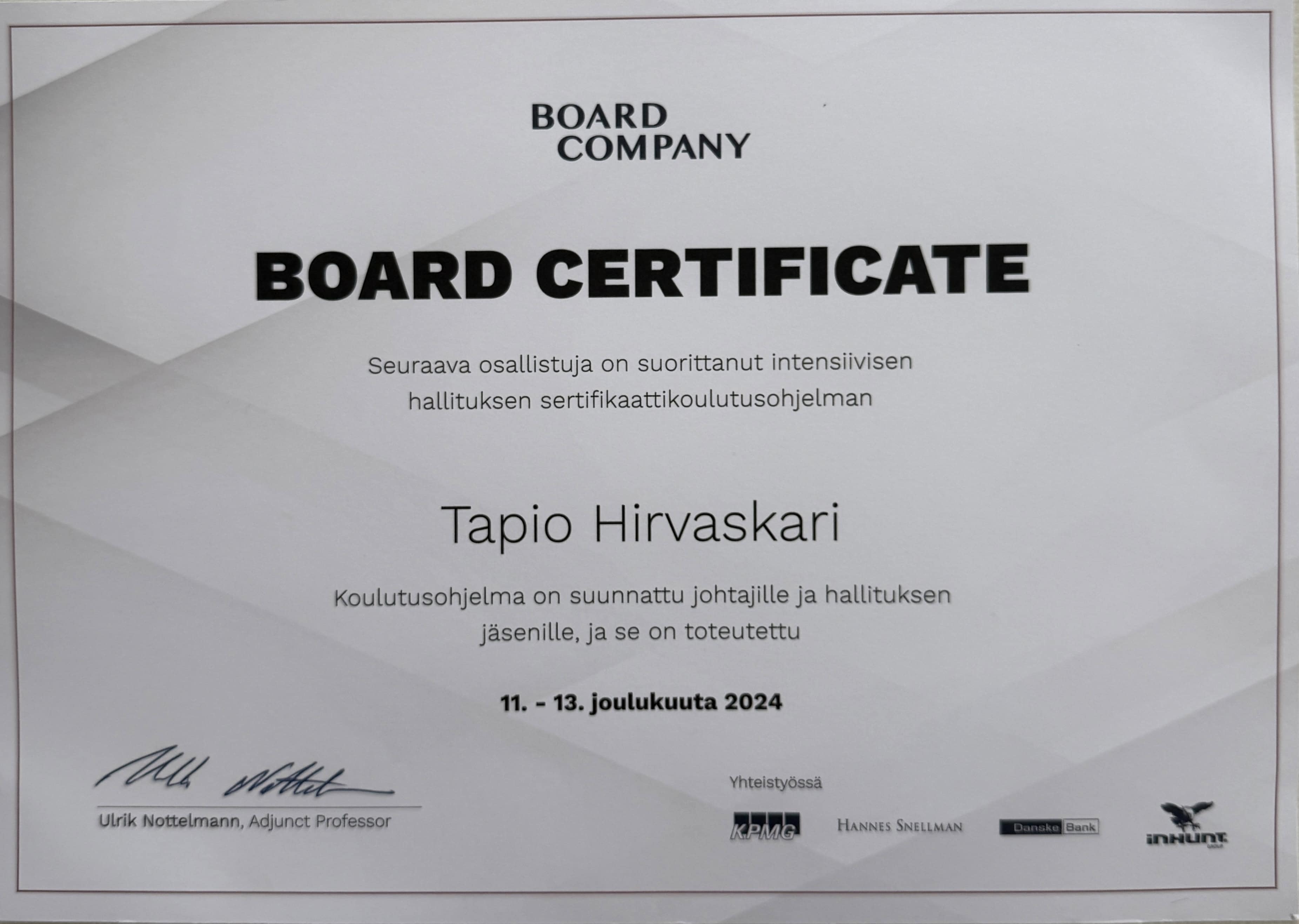 Yli 30 vuotta yrittäjänä. OEM-valmistus Aasiassa ja Euroopassa, laadunvarmistus, yritys- ja projektijohtaminen, myynti & markkinointi. Autan hallitustyöskentelyssä, kasvuprojekteissa ja kehityshankkeissa käytännönläheisellä otteella.